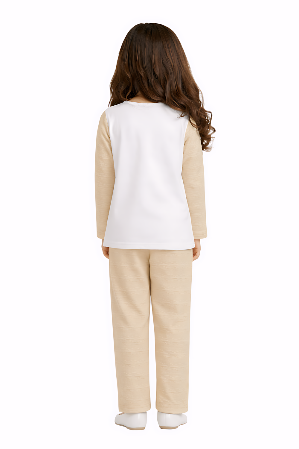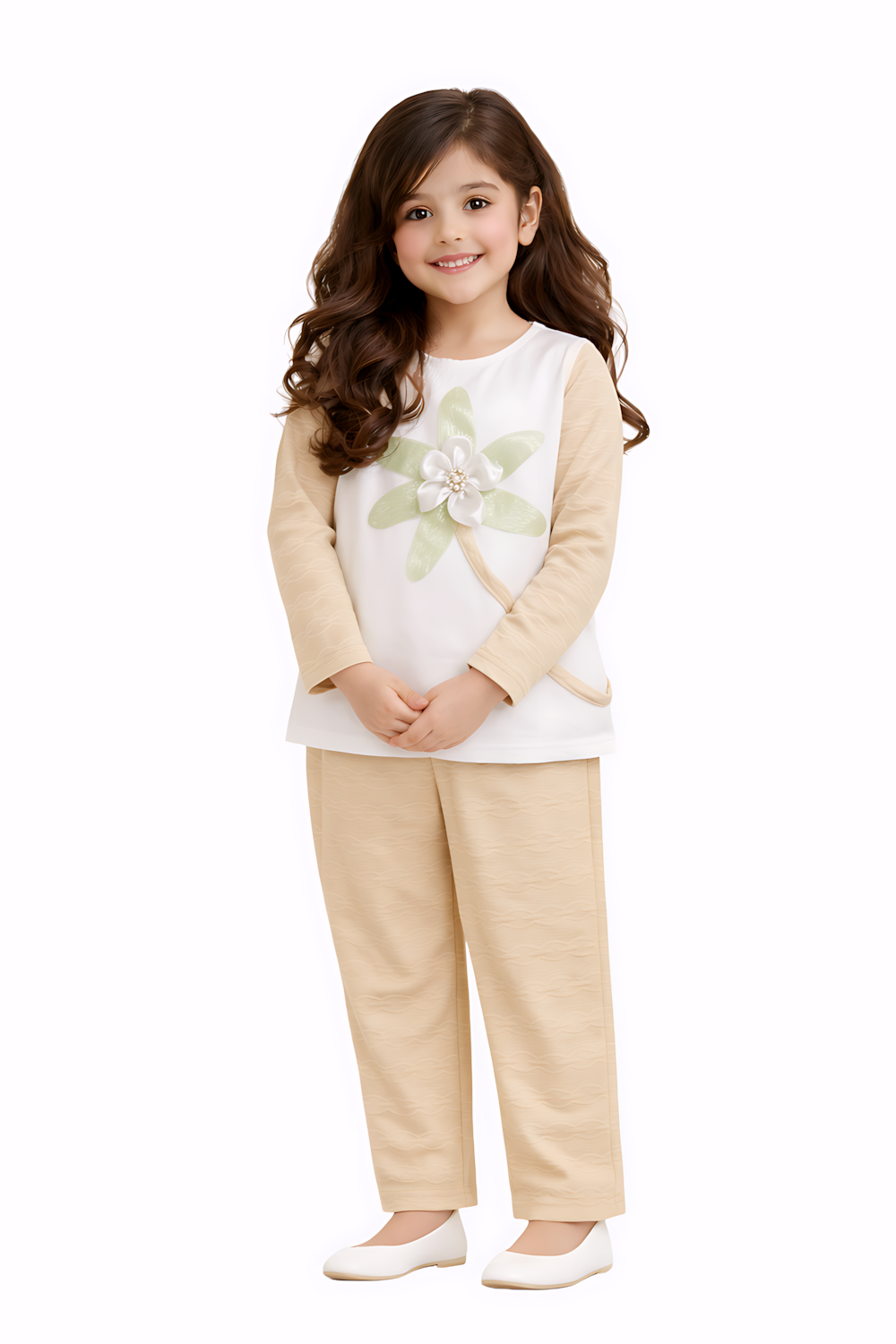 The Luna Blossom Set in Sand Beige is a beautifully crafted two-piece outfit designed for little girls who love comfort with style. Featuring a soft neutral base with a delicate floral applique detail, this set blends simplicity with elegance.